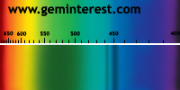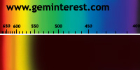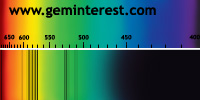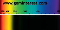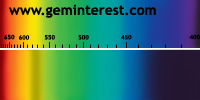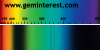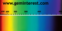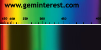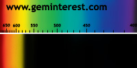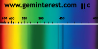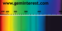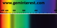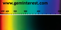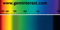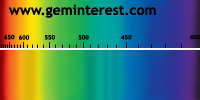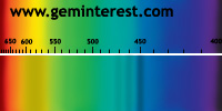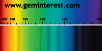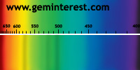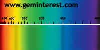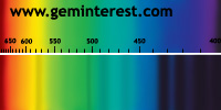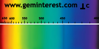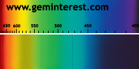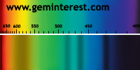 | Couleur: Brun-verdâtre à Verdâtre D65 à F7 | Rougeâtre A Chromophore : Mn2+ en coordination cubique déformée et Cr3+ en coordination octaédrique |