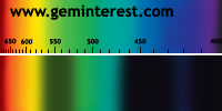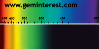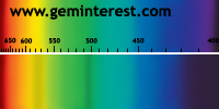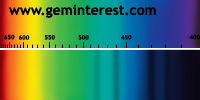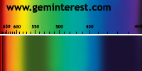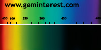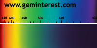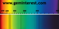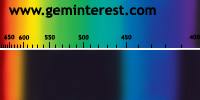 | Couleur: jour: Vert / électrique: rouge Chromophore : Cr3+ et/ou Fe3+ en Coordination Octaèdrique et suivant concentrations respectives |